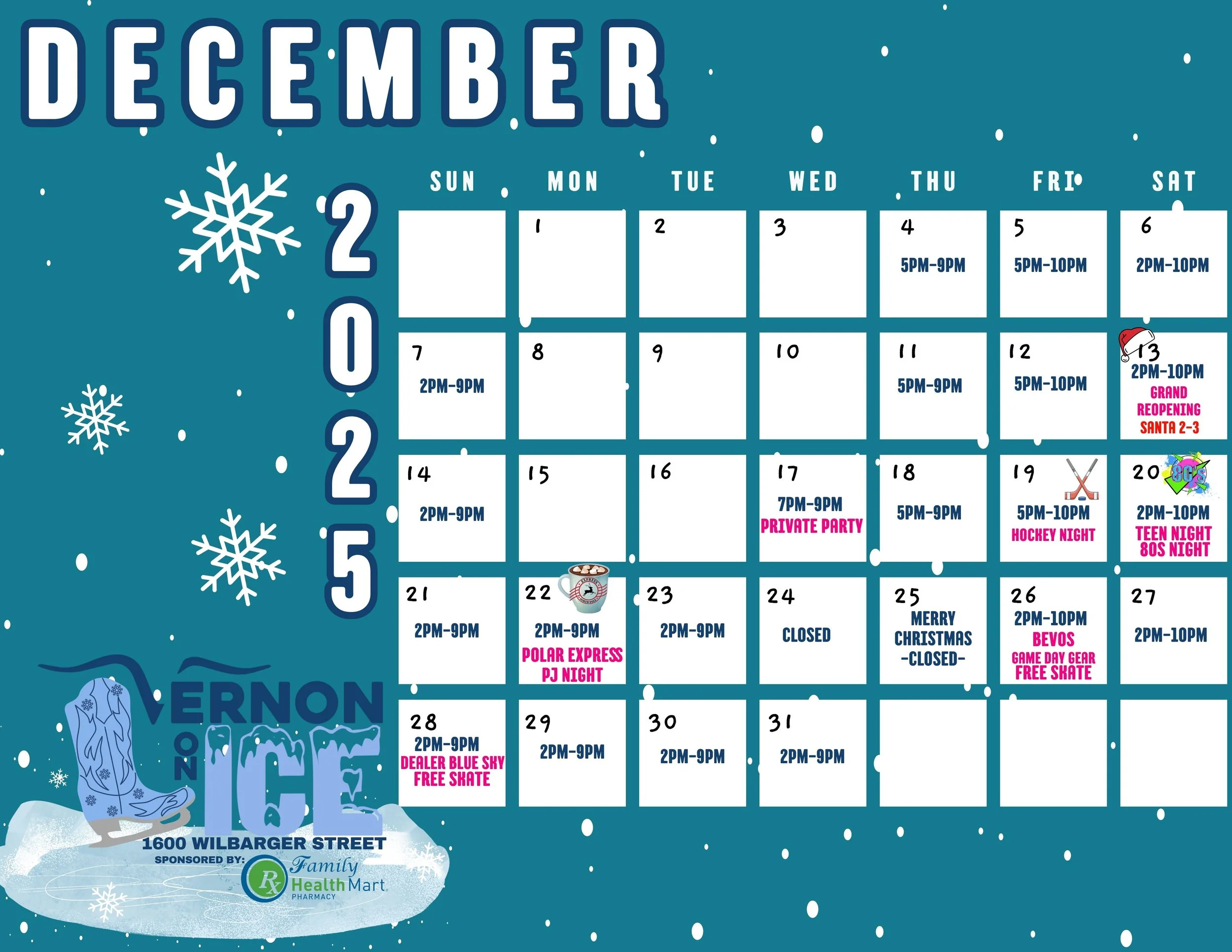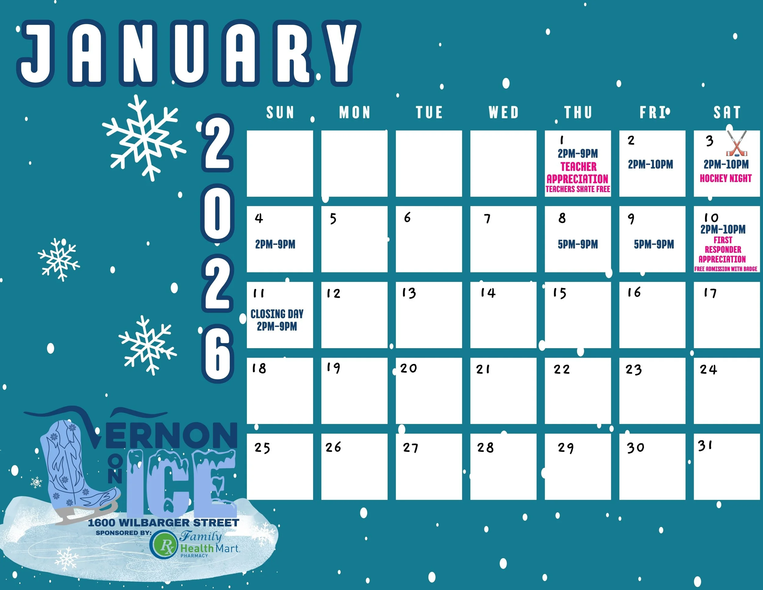 COME ICE SKATE WITH US! Vernon On Ice Vernon On Ice Vernon On Ice COME SKATE WITH US PRICING Adults $8Youth $5